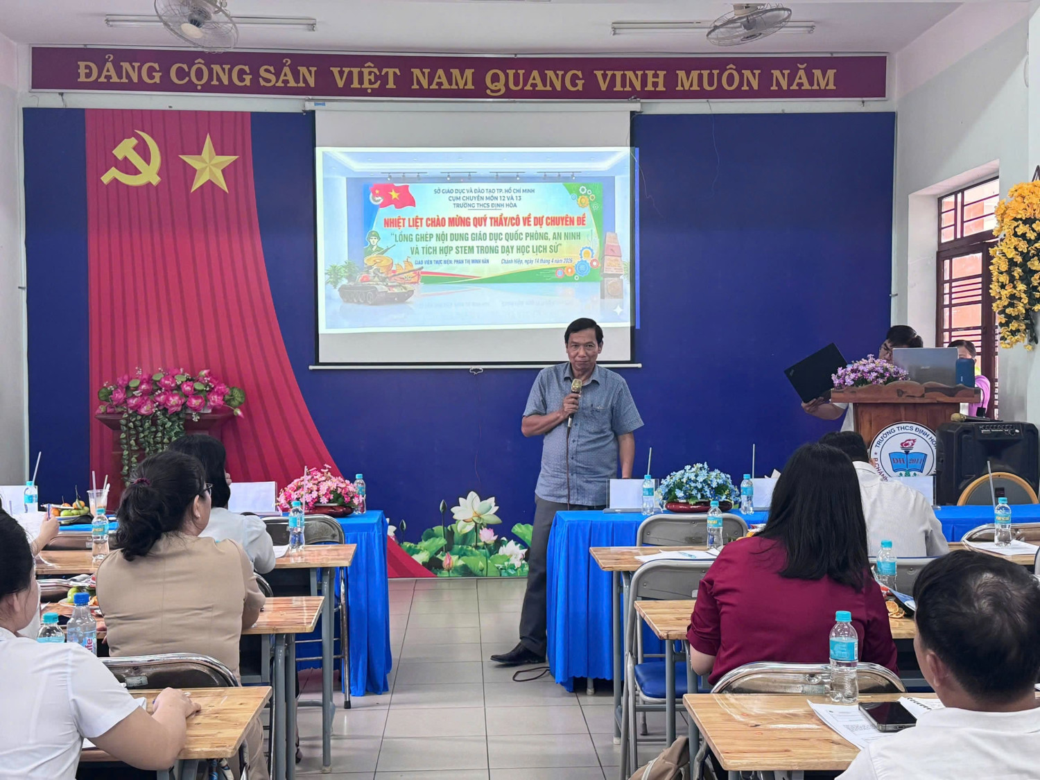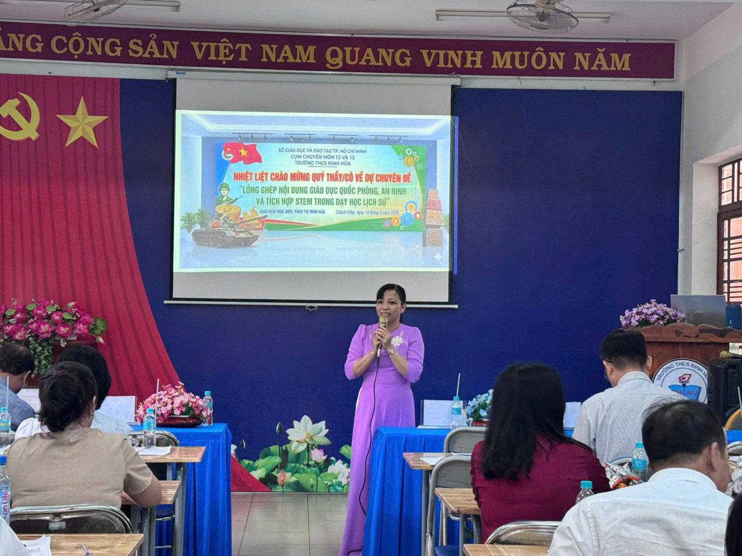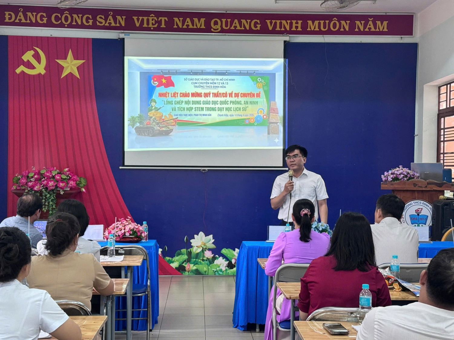 🌟Thực hiện kế hoạch chuyên môn năm học 2025–2026, vào lúc 8 giờ ngày 14 tháng 4 năm 2026, tại Trường THCS Định Hòa, chuyên môn cụm 12 đã tổ chức sinh hoạt chuyên đề với nội dung: “Lồng ghép nội dung giáo dục quốc phòng, an ninh và tích hợp STEM trong dạy học Lịch sử”.