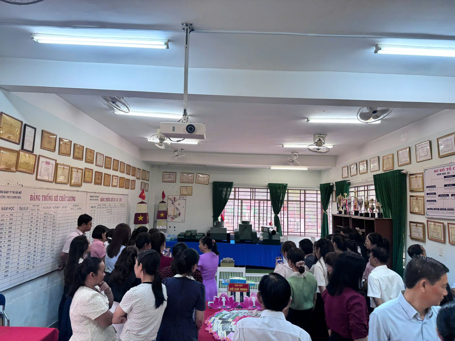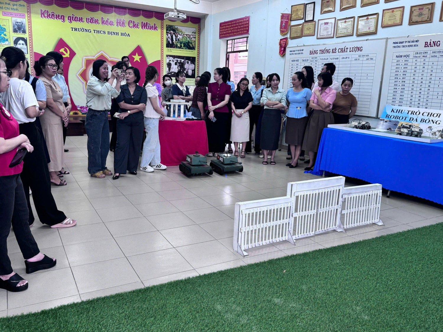 Bên cạnh phần báo cáo chuyên đề, các đại biểu tham dự còn được tham quan các hình ảnh minh họa và sản phẩm học tập tiêu biểu của học sinh trong quá trình triển khai lồng ghép nội dung giáo dục quốc phòng – an ninh và tích hợp STEM. Những sản phẩm này thể hiện sự sáng tạo, khả năng vận dụng kiến thức liên môn và mang lại hiệu quả thiết thực trong quá trình dạy học.